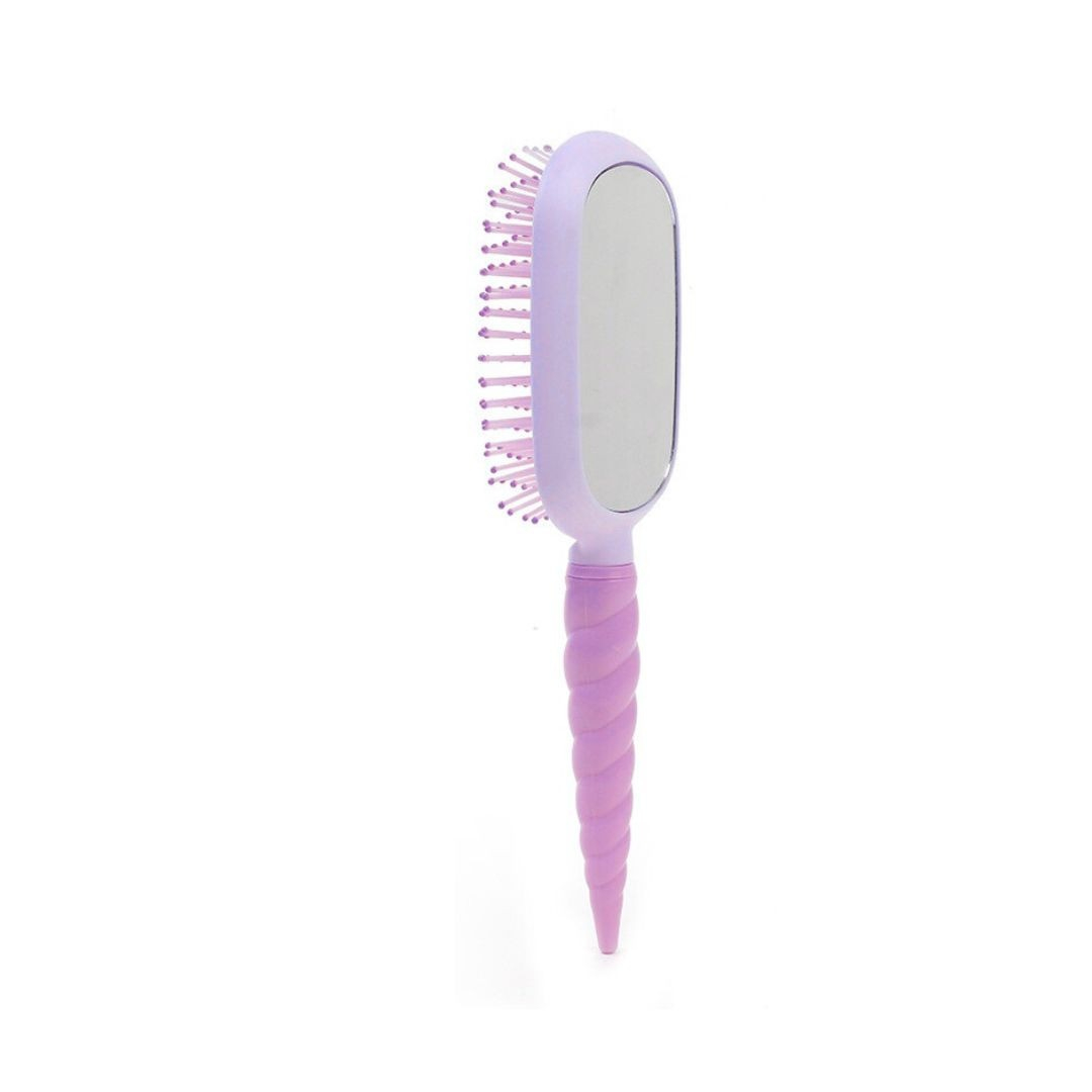 Manerul cu design unicorn este realizat pentru o prindere ferma si confortabila, chiar si atunci cand peria este folosita pe par umed. Oglinda incorporata pe spate transforma peria intr-un accesoriu multifunctional, ideal pentru retusuri rapide si verificarea coafurii oriunde te-ai afla.