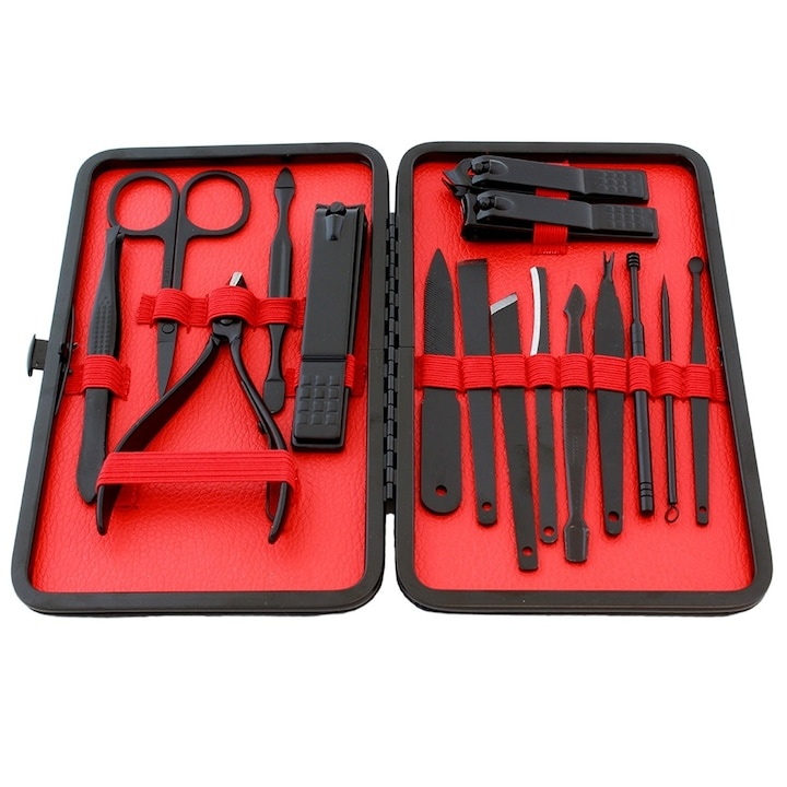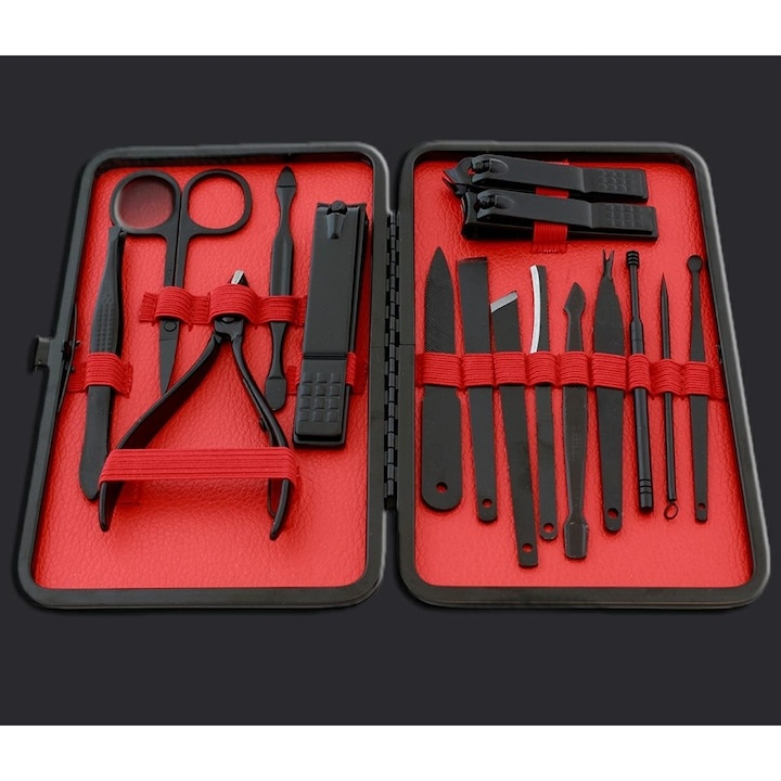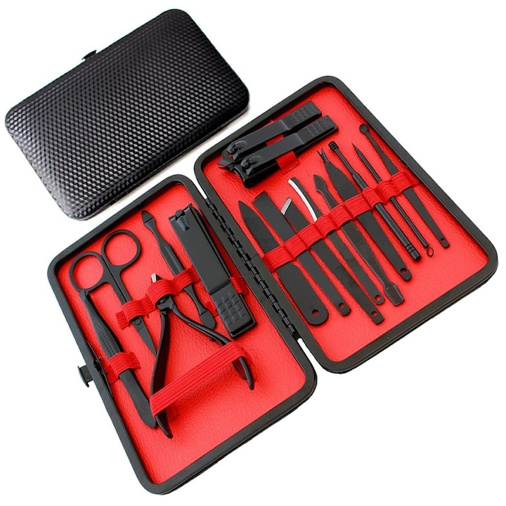 Cu 16 instrumente profesionale, aceasta trusa ofera tot ce ai nevoie pentru taierea, modelarea si ingrijirea unghiilor, dar si pentru indepartarea punctelor negre sau curatarea delicata a urechilor. Toate piesele sunt realizate din otel inoxidabil de inalta calitate, rezistent la coroziune si uzura, garantand o utilizare sigura si indelungata.