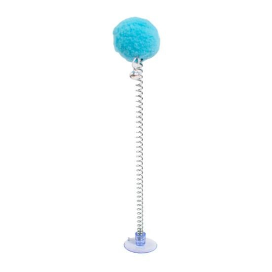 Dactylion Jucarie interactiva pentru pisici, ventuza, minge din plus, cu clopotel, arc flexibil, 23 cm, albastru