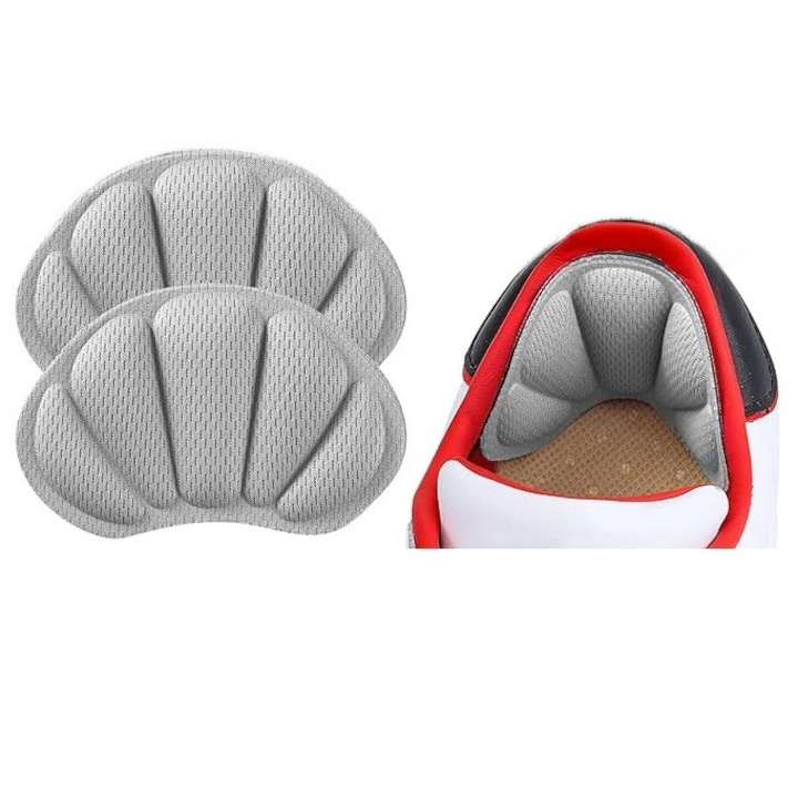 Branturi pentru calcai cu pernite din spuma cu memorie, 2 piese, confort sporit si amortizare, autoadezive, design universal pentru reducerea frecarii si stabilizarea piciorului, culoare gri
