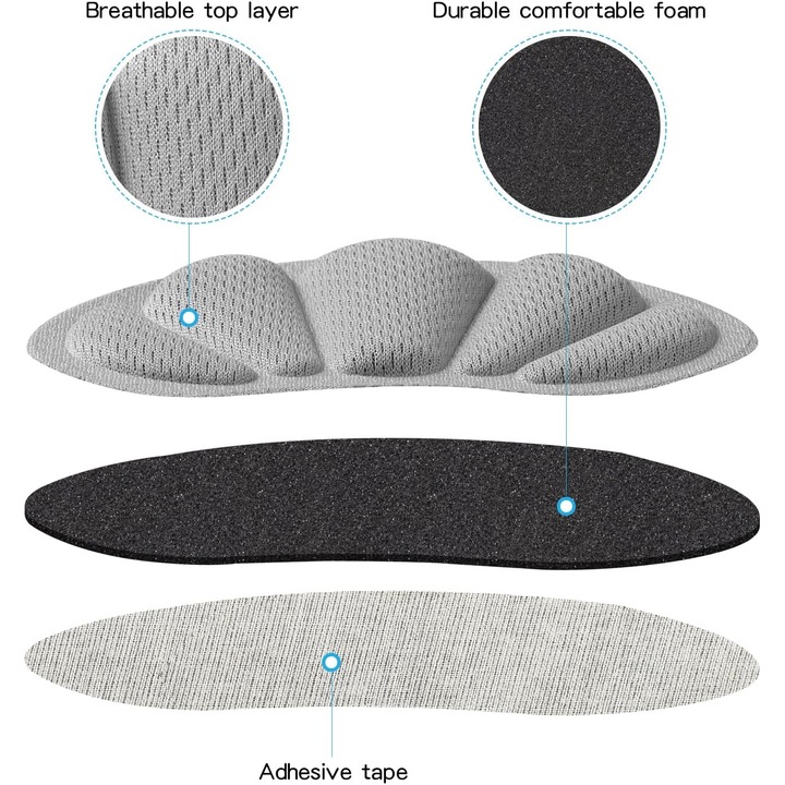 Materialul textil moale si stratul interior din burete contribuie la obtinerea unei senzatii placute, facand branturile potrivite pentru activitati zilnice, mers intens sau perioade lungi petrecute in picioare. Datorita adezivului integrat, branturile se fixeaza ferm in interiorul pantofilor, eliminand riscul alunecarii sau rotirii in timpul utilizarii. Marimea universala permite utilizarea lor atat in incaltaminte sport, cat si in pantofi casual sau de serviciu, iar forma ergonomica sustine corect pozitia calcaiului pentru un mers mai stabil si relaxat.