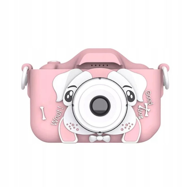 Aparatul foto pentru copii, model catel, in culoare roz, este creat special pentru cei mici care doresc sa descopere lumea prin imagini si filmari proprii. Designul simpatic, cu elemente 3D inspirate din forma unui catel prietenos, transforma produsul intr-un accesoriu atractiv si usor de indragit de catre copii.