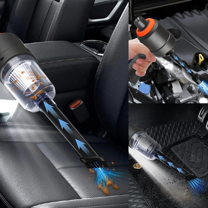 Aspirator auto, portabil, 2 in 1, aspirare si suflare, tip pistol, putere aspirare 5500 Pa, incarcare USB, negru