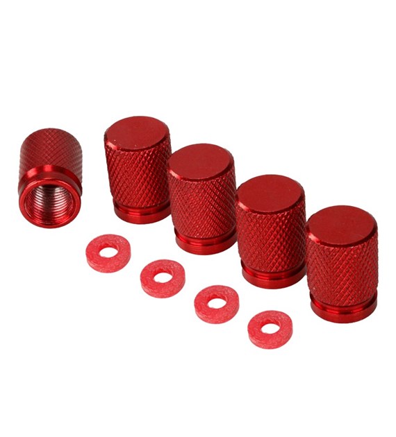 Setul include 5 capace, suficiente pentru toate rotile si o piesa de rezerva. Capace de supapa din aluminiu, set 5 bucati, culoare rosu.