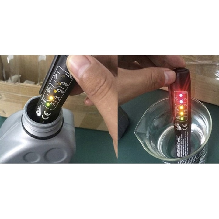 Acest instrument de testare a lichidului de frana este un dispozitiv practic si esential pentru intretinerea oricarui vehicul, permitand masurarea precisa a continutului de apa din lichidul de frana in doar cateva secunde. Fabricat pentru a oferi siguranta si eficienta, testerul utilizeaza tehnologie cu LED pentru a indica in mod clar starea lichidului, ajutand la prevenirea defectiunilor sistemului de franare.