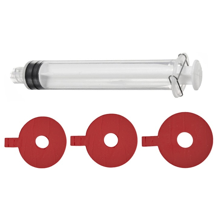 Materiale incluse: rasina 2,5 ml, aplicator rotund, sigilanti siliconici (3 buc), folii de polimerizare (5 buc), seringa, 2 lame de ras, pinska
