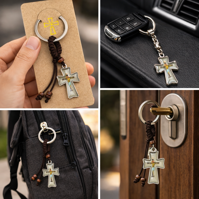 Structura usoara si compacta permite utilizarea practica pentru chei, rucsac sau geanta, fiind potrivita pentru utilizare zilnica. Accesoriul poate fi purtat discret si reprezinta un simbol spiritual pentru persoanele credincioase.