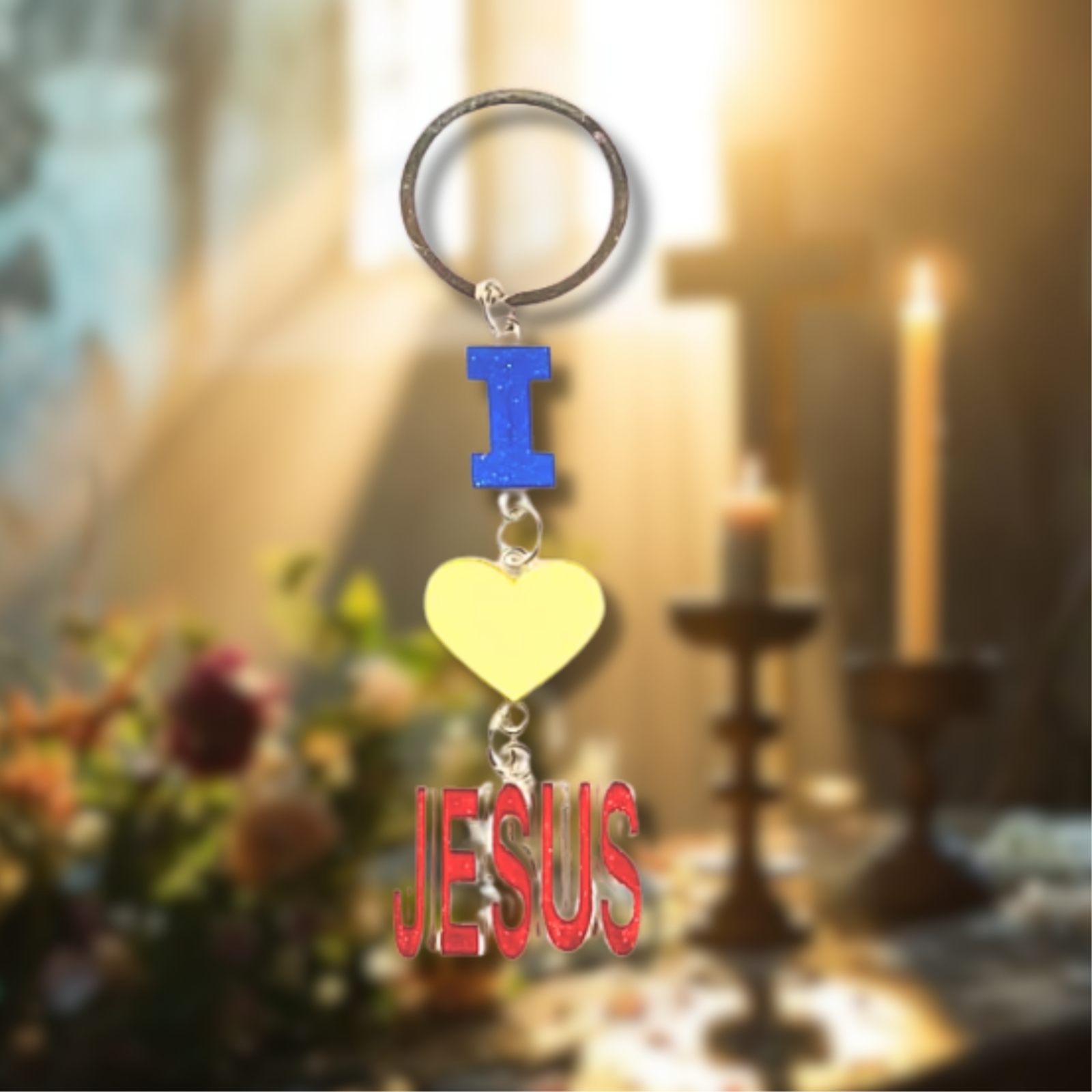 Acest breloc metalic multicolor cu mesajul „I Love Jesus” este un accesoriu expresiv si usor de recunoscut, potrivit pentru chei, geanta sau rucsac. Designul vertical imbina litera „I”, simbolul inimii si textul „Jesus”, oferind un mesaj clar si vizibil. Dimensiunea de 11 x 3 cm il face practic in utilizarea zilnica, fara a incomoda.