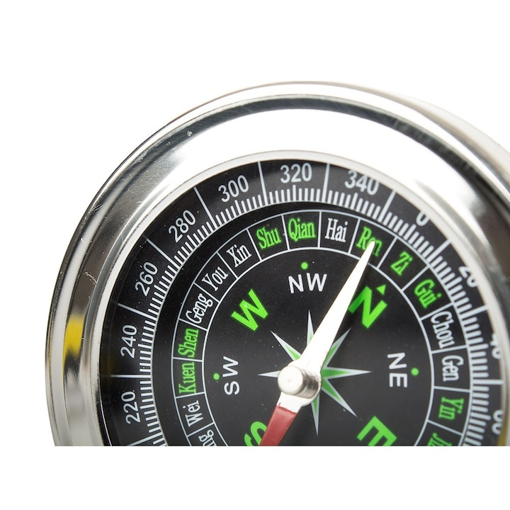 Busola mare de buzunar metalica 80 mm, cadran mare, precizie 5 grade, pentru camping drumetii orientare, argintie