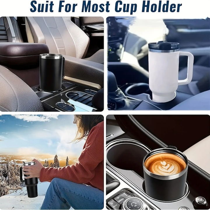 Capacul este prevazut cu sistem de inchidere eficient si include un pai reutilizabil, ideal pentru consum rapid si comod, mai ales in timpul deplasarilor. Forma bazei este compatibila cu majoritatea suporturilor auto pentru pahare, ceea ce face produsul extrem de practic pentru utilizarea in masina, la birou sau in timpul calatoriilor.