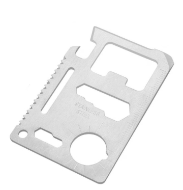 Realizat din otel inoxidabil, cardul este rezistent la uzura si conditii dificile, fiind potrivit pentru utilizare in aer liber, camping, drumetii sau situatii de urgenta. Constructia solida permite folosirea repetata fara deformare, oferind fiabilitate pe termen lung.