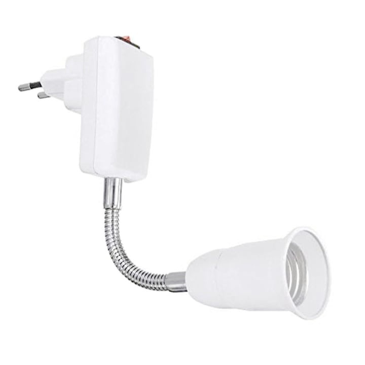 Adaptor dulie E27 cu intrerupator fara fir, convertor pentru becuri LED, reglabil 360 grade, usor de instalat, pentru bucatarie, sufragerie, restaurante si cafenele, plastic, alb