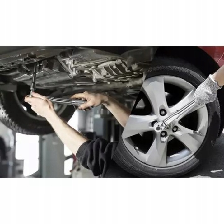 Manerul ergonomic, cu suprafata antiderapanta, asigura control si confort chiar si in utilizari indelungate. Cu o lungime de 46.5 cm si prindere de 1/2 inch, cheia este potrivita pentru interventii ce necesita cupluri medii si mari, precum lucrari la roti, suspensii sau componente mecanice.