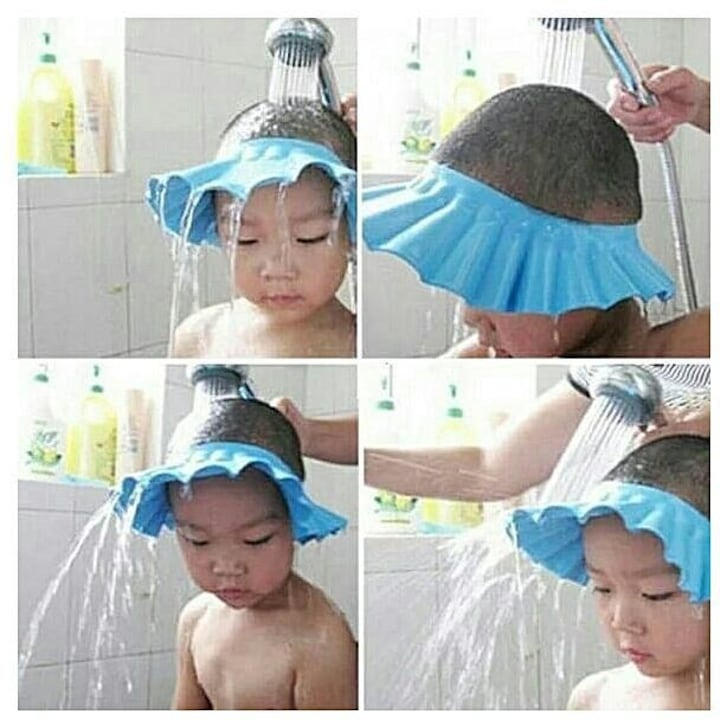 Palarie de baie pentru copii, reglabila, protectie impotriva apei si samponului, material moale si confortabil, ideala pentru spalat parul fara stres, albastra