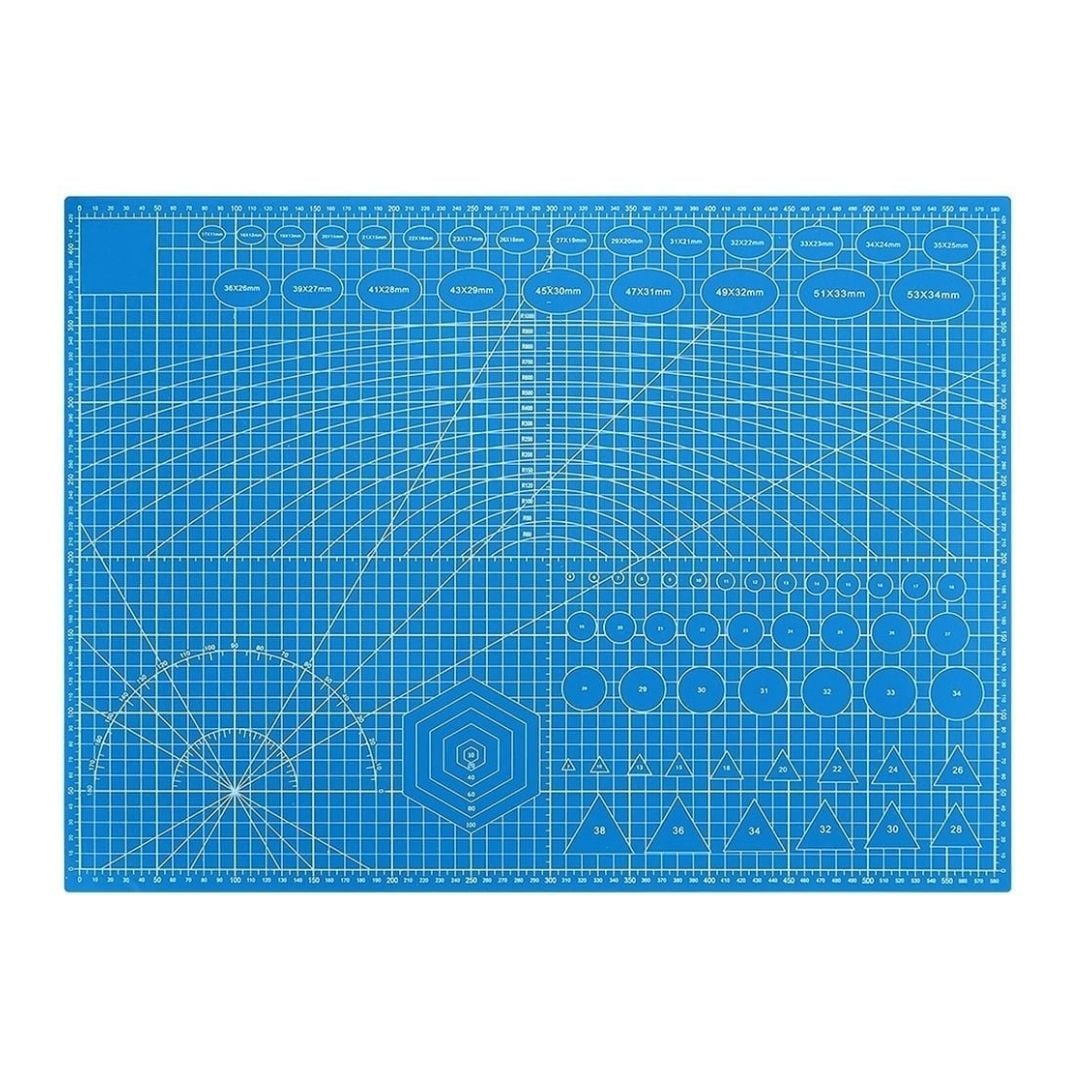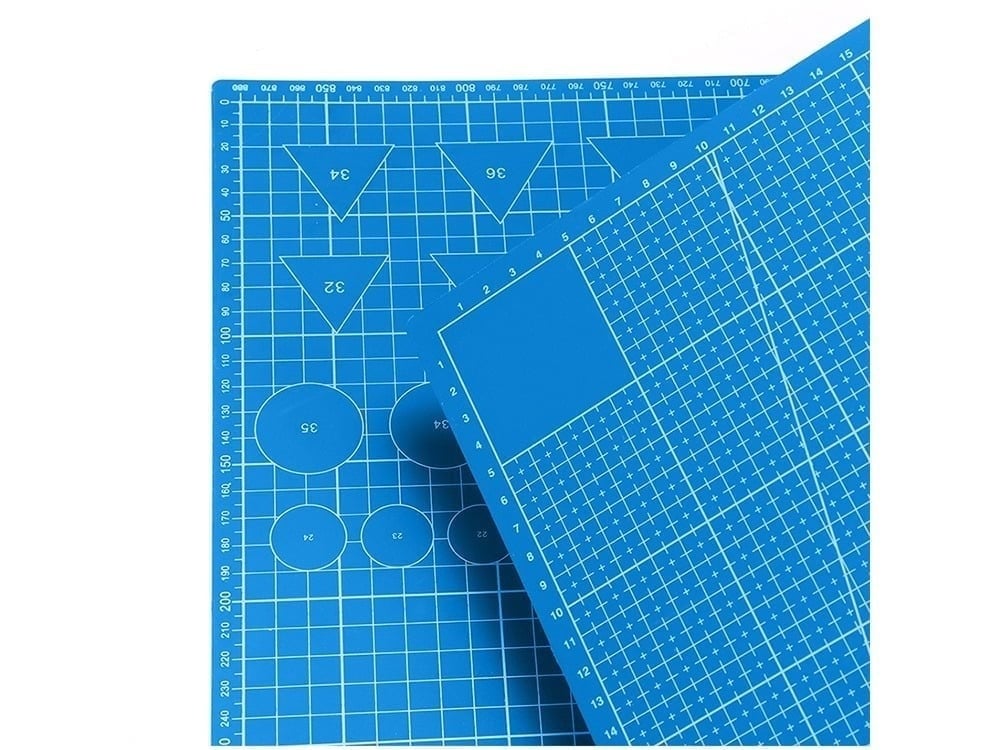 Grila milimetrica clara, marcajele pentru unghiuri standard si liniile de ghidaj precise asigura masuratori corecte si taieri controlate, inclusiv pentru proiecte complexe. Culoarea albastra mata reduce reflexiile luminii si imbunatateste contrastul vizual, fiind ideala pentru lucrul indelungat si de precizie.