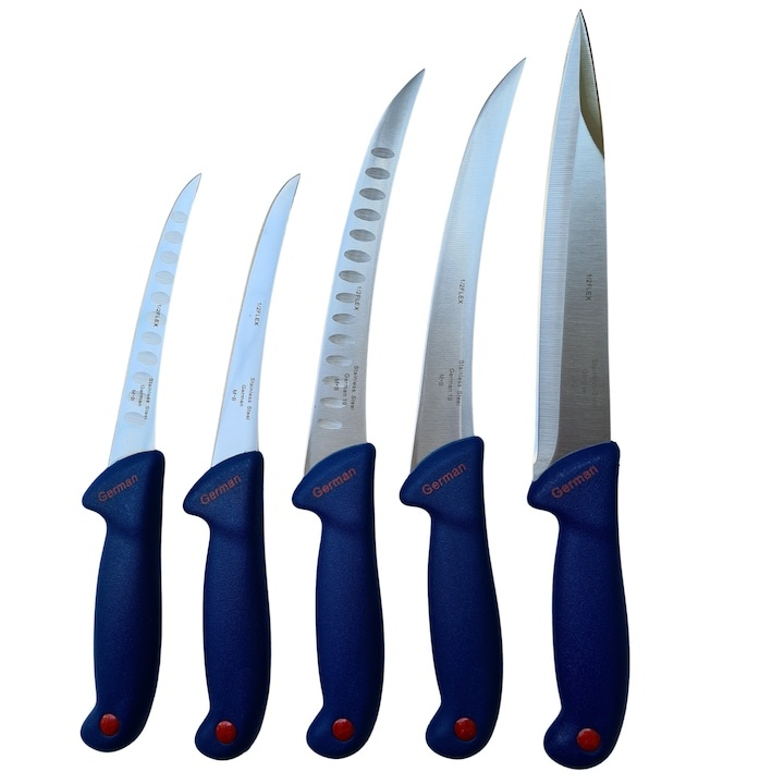 Set 5 cutite profesionale pentru macelarie, dezosat, filetat si injunghiat, otel inoxidabil