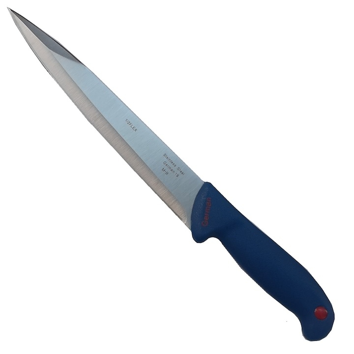 Manerele ergonomice din plastic sunt gandite pentru prindere sigura si stabilitate chiar si in conditii de umiditate, reducand oboseala mainii in utilizari prelungite. Cutitele cu alveole minimizeaza aderenta carnii pe lama, crescand eficienta si viteza de lucru. Setul este potrivit pentru carmangerii, abatoare, restaurante sau gospodarii avansate unde este necesar control maxim si precizie.