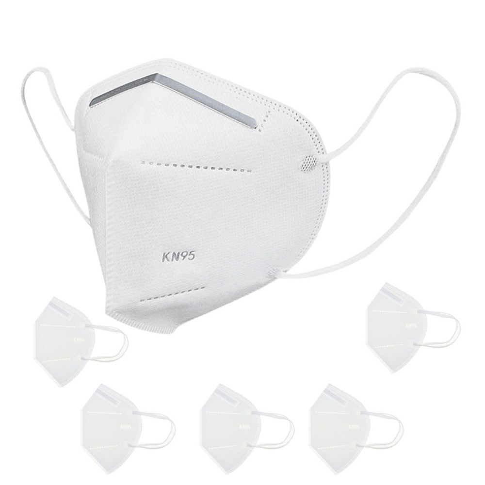 Set 5 masti de protectie KN95 pentru adulti, filtrare ridicata minimum 95%, de unica folosinta, culoare alba