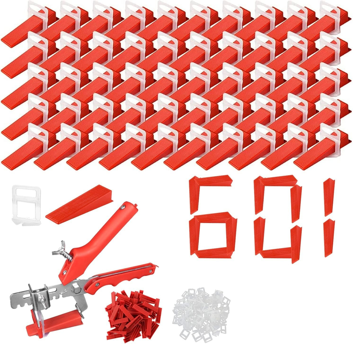 Dactylion Set nivelare gresie 500 clipsuri, 100 pene si cleste de nivelare Piese – Gresie și Faianță, Cleme + Pene + Clește, Montaj Rapid și Precis pe Perete și Podea