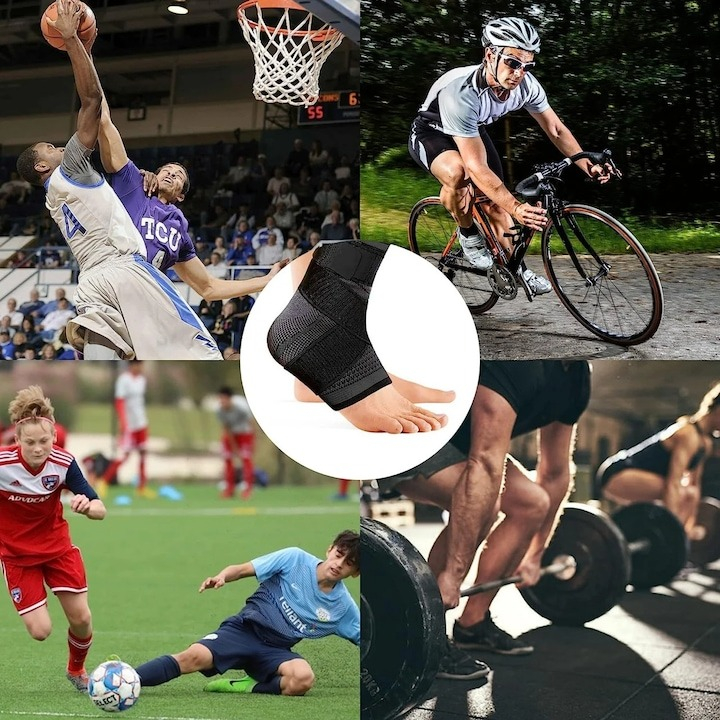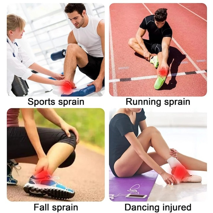 Bretelele elastice reglabile, dispuse încrucișat, asigură o fixare sigură și previn alunecarea, oferind un plus de protecție în mișcare. Recomandată pentru alergare, fitness, fotbal, baschet, volei, ciclism și alte sporturi, dar și pentru persoanele care se confruntă cu dureri, entorse, inflamații sau instabilitate la nivelul gleznei.