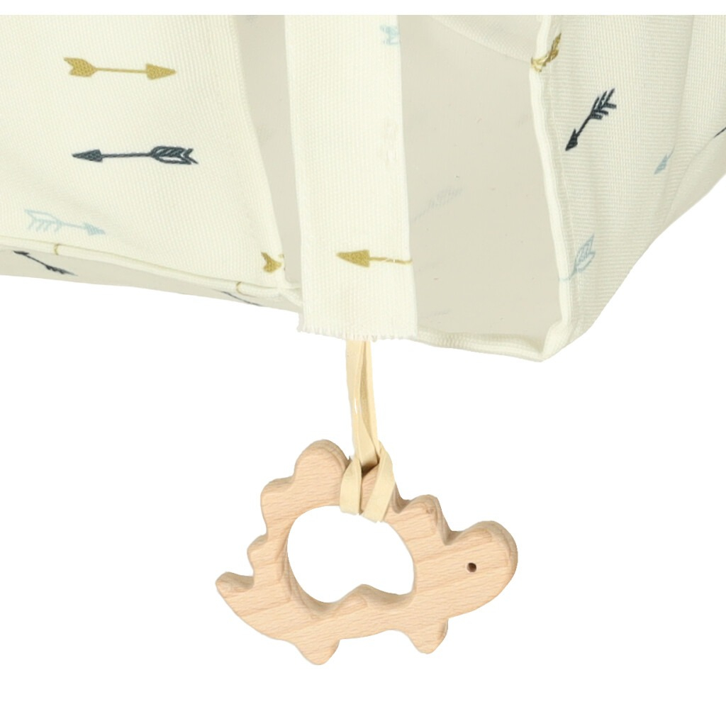 Designul clasic și culorile neutre – bej cu alb – îl fac potrivit pentru orice tip de decor, fie în cameră, pe terasă sau în grădină. Sistemul de prindere este simplu și sigur, fiind prevăzut cu frânghii groase din bumbac și bile decorative din lemn, care adaugă un plus de farmec natural.