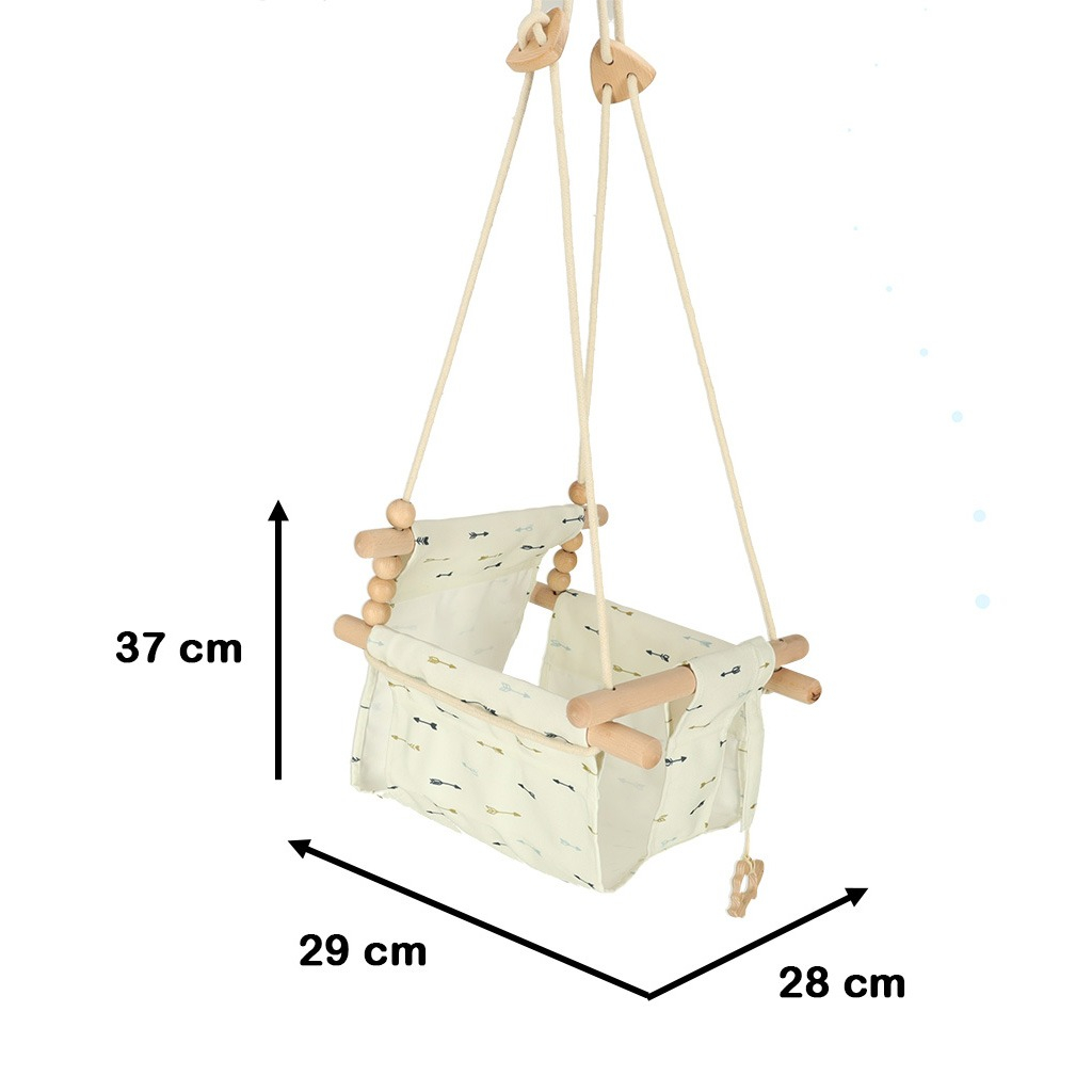 Transformă orice spațiu într-un loc de joacă sigur și plin de bucurie cu acest leagăn din lemn pentru copii, realizat din materiale naturale, sigure și confortabile. Structura solidă din lemn de fag oferă stabilitate și rezistență, iar șezutul moale din bumbac garantează confortul copilului în timpul utilizării.