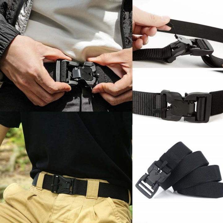 Cu o latime de 3.8 cm si o lungime de 125 cm, este o solutie versatila pentru tinute variate, de la cele casual si sport pana la echipamente de lucru sau tinute outdoor. Catarama magnetica asigura o inchidere rapida, sigura si intuitiva, oferind libertate de miscare si un plus de confort in utilizarea zilnica. Designul minimalist in nuanta de negru o face usor de asortat cu aproape orice tip de pantaloni, fie ca este vorba despre jeansi, pantaloni tactici sau pantaloni eleganti.