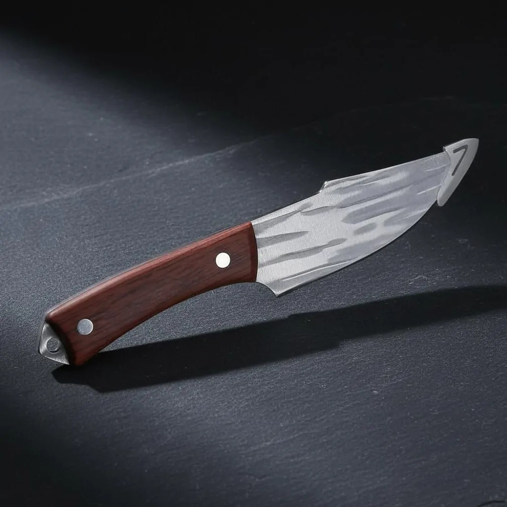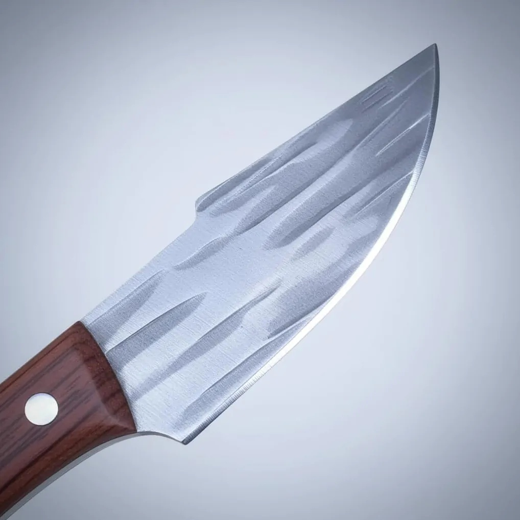 Manerul ergonomic, cu aspect natural si finisaj atent realizat, ofera o prindere sigura si confortabila, reducand oboseala mainii in timpul utilizarii prelungite. Forma acestuia este gandita pentru stabilitate si control, chiar si atunci cand cutitul este folosit in medii umede sau solicitante.