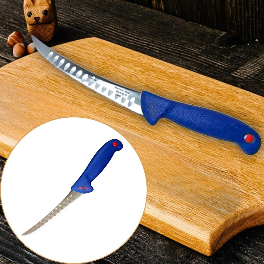 Acest cutit macelar cu lama curbata este conceput pentru operatiuni precise de feliere si dezosare, fiind potrivit pentru utilizare profesionala in macelarii, carmangerii, restaurante sau pentru uz casnic avansat. Forma curbata a lamei permite un control superior in jurul oaselor si articulatiilor, facilitand separarea carnii fara efort si cu pierderi minime. Designul este adaptat lucrarilor care necesita acuratete si fluiditate in miscare.
