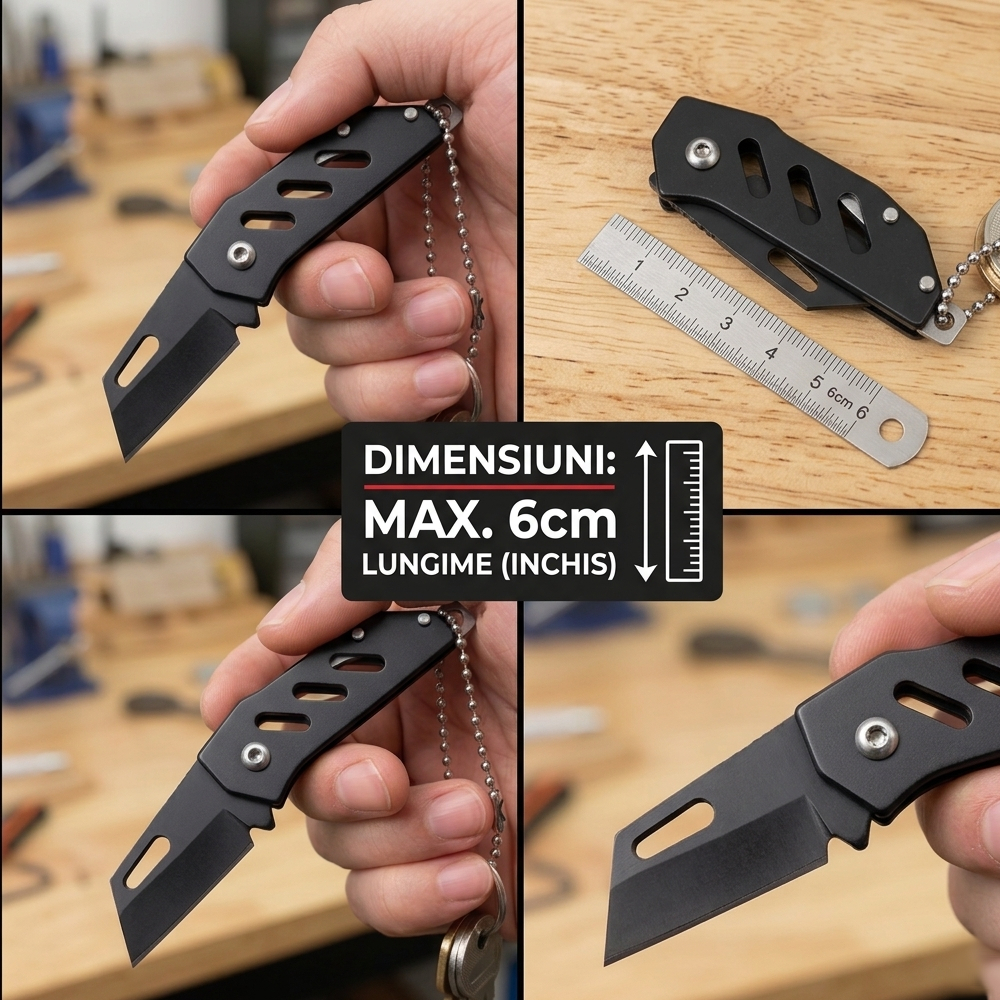 Un instrument compact si practic, conceput pentru utilizare zilnica si transport facil. Acest mini briceag pliabil este ideal pentru sarcini usoare, fiind suficient de mic pentru a fi purtat permanent la chei sau in buzunar.