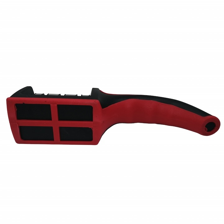 Constructia ergonomica include un maner din cauciuc antialunecare si baza stabila, oferind siguranta in timpul utilizarii. Dispozitivul ramane fix pe suprafata, reducand riscul de accidentare.