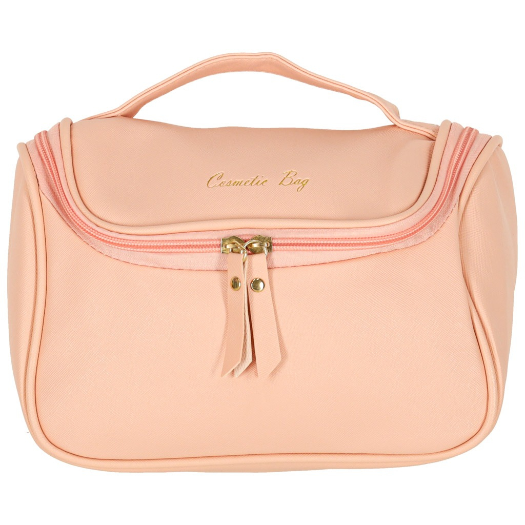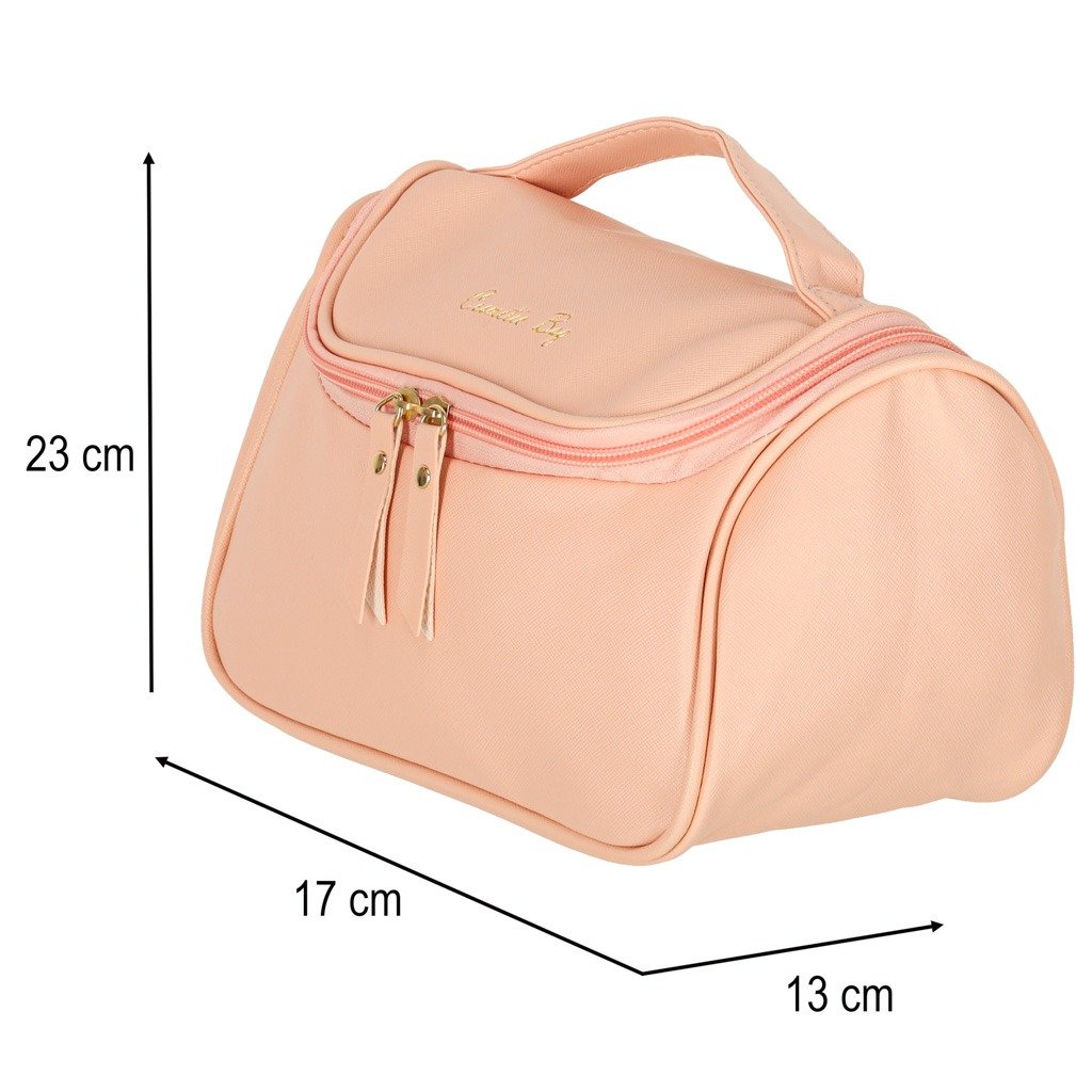 Geanta cosmetica este solutia practica pentru organizarea produselor de ingrijire si machiaj atunci cand calatoresti sau cand vrei sa le tii ordonate acasa. Realizata din PVC rezistent, cu exterior usor rigidizat, geanta protejeaza continutul de stropi de apa, murdarie sau sifonare. Compartimentul principal este spatios si permite depozitarea recipientelor de sampon, gel de dus, lotiuni sau parfum, iar buzunarul interior cu fermoar, din plasa, este ideal pentru obiecte mici precum pensule, rujuri, accesorii de par sau bijuterii. Inchiderea se face cu fermoar dublu, ceea ce ofera acces rapid si sigur. Manerul superior faciliteaza transportul, astfel incat geanta poate fi luata usor in bagaj, in masina sau la sala. Culoarea roz pastel ii ofera un aspect elegant si feminin, potrivit atat pentru calatorii, cat si pentru uz zilnic.