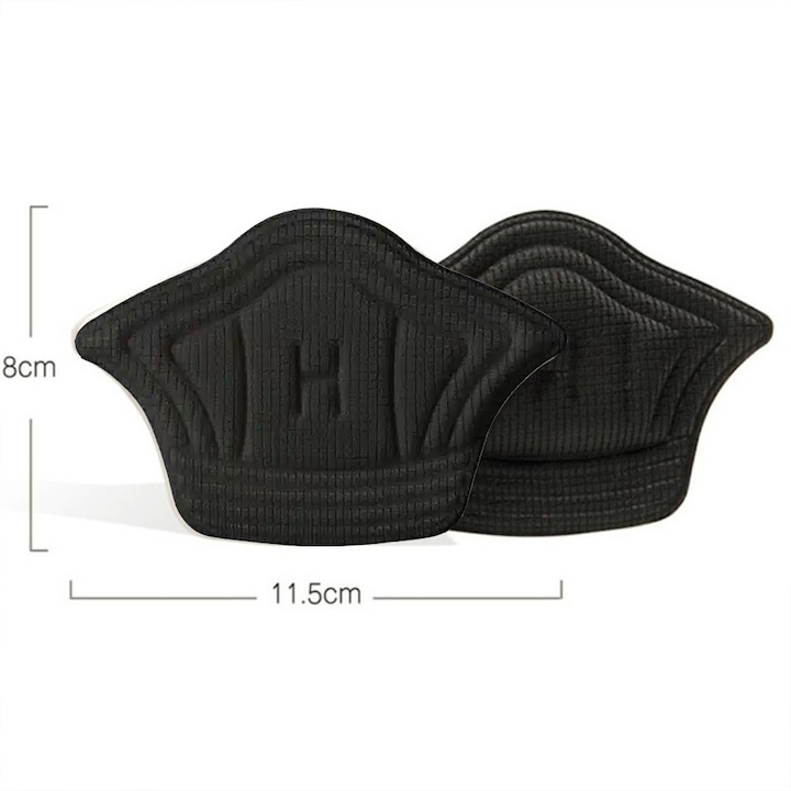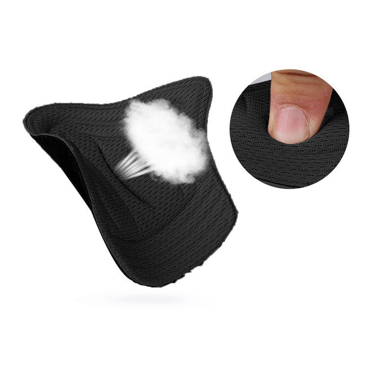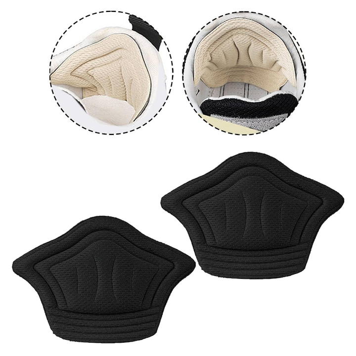 Branturi pentru calcai cu pernite din spuma 4D, 2 piese, amortizare superioara, autoadezive, marime universala, ideale pentru reducerea frecarii si cresterea confortului in incaltamintea de zi cu zi, negru
