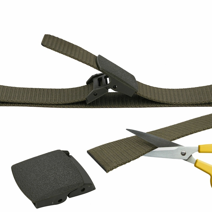 Curea barbati din nylon ajustabila, design fara gauri, catarama din plastic rezistent, 120 cm, verde kaki