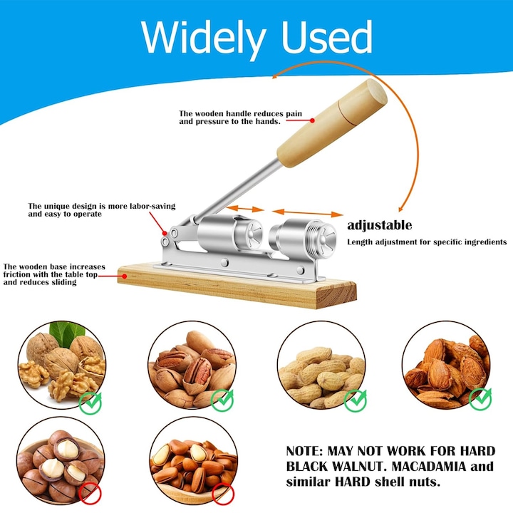 Utilizare multifunctionala: sparge nuci pecan, nuci clasice, alune, migdale, nuci de Brazilia