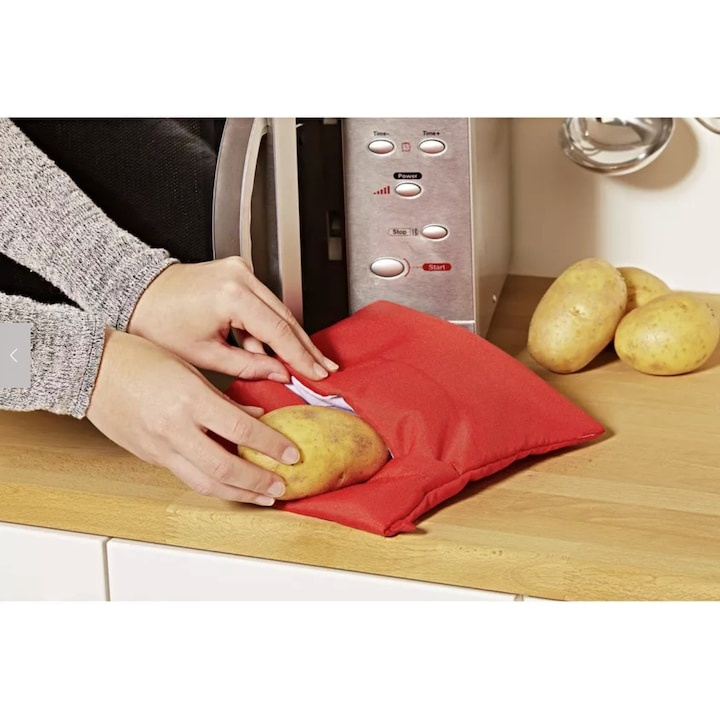 Utilizarea este simpla si intuitiva, fiind suficient sa introduci cartofii sau legumele in punga si sa o asezi in cuptorul cu microunde. In functie de puterea aparatului, prepararea dureaza aproximativ 4–10 minute, economisind timp si energie. Punga poate gati pana la 4 cartofi mari simultan, fiind potrivita pentru mese rapide, gustari sau preparate sanatoase.