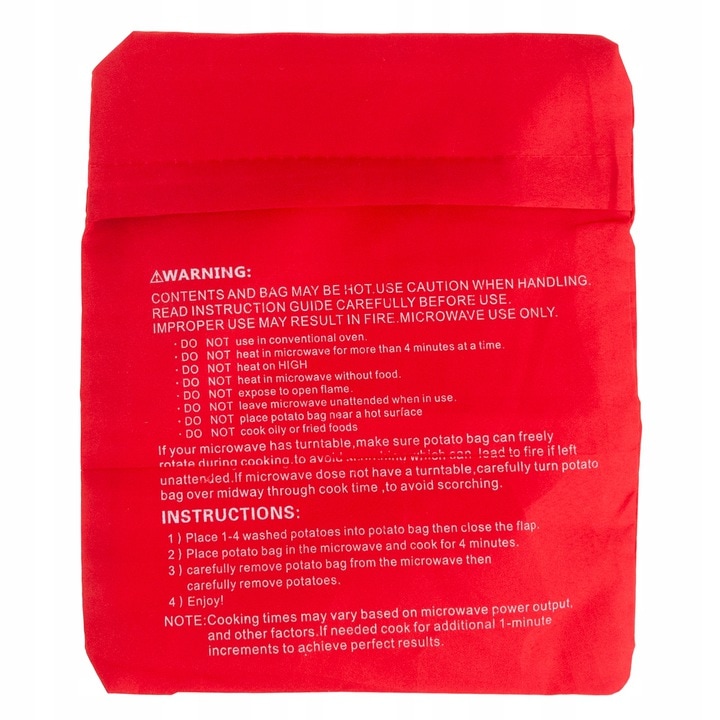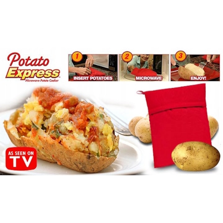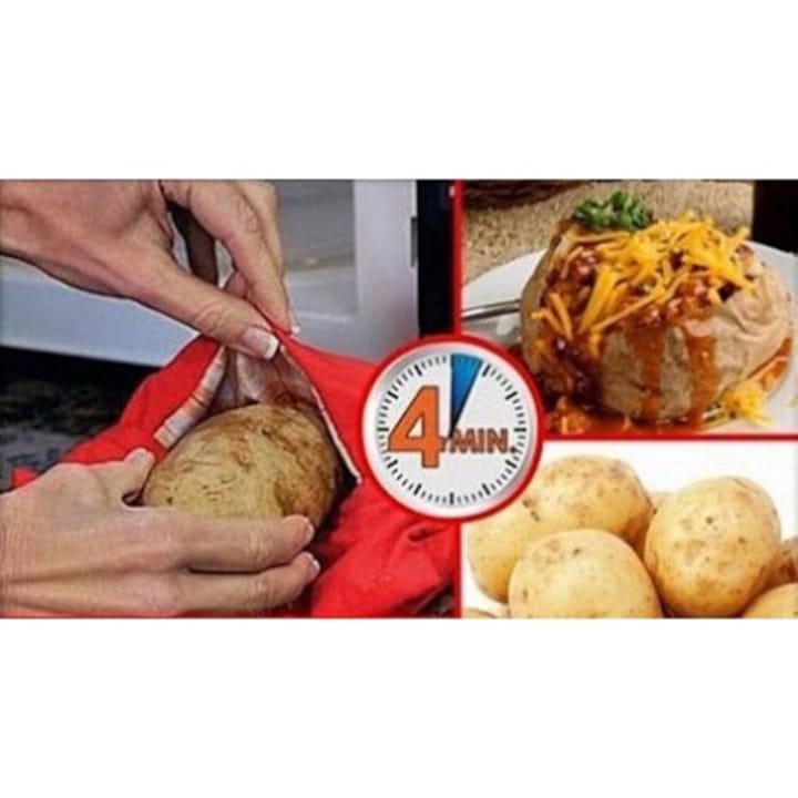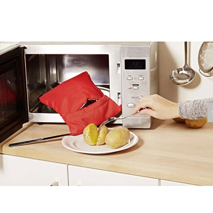 Utilizarea este extrem de simpla: introduci cartofii in punga, o asezi in cuptorul cu microunde si in aproximativ 4–10 minute (in functie de puterea cuptorului), mancarea este gata. Punga poate gati pana la 4 cartofi mari simultan, fiind ideala pentru cine rapide, gustari sau preparate sanatoase fara ulei.