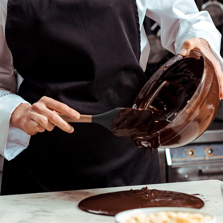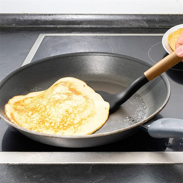 Fiecare ustensila este echipata cu un maner robust din lemn, conceput pentru a oferi o prindere stabila si confortabila in timpul gatitului. Lemnul natural adauga un plus de stil si rafinament, integrandu-se armonios in estetica unei bucatarii moderne sau traditionale. In plus, datorita siliconului moale si flexibil, ustensilele nu zgarie vasele sau tigaile antiaderente, prelungind durata de viata a acestora.