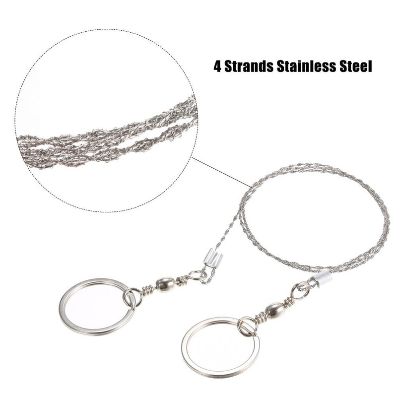 Constructia din sarma de otel ofera flexibilitate si rezistenta, iar manerele ergonomice asigura o prindere stabila in timpul utilizarii. Dimensiunea compacta permite transportul usor in rucsac sau trusa de supravietuire.