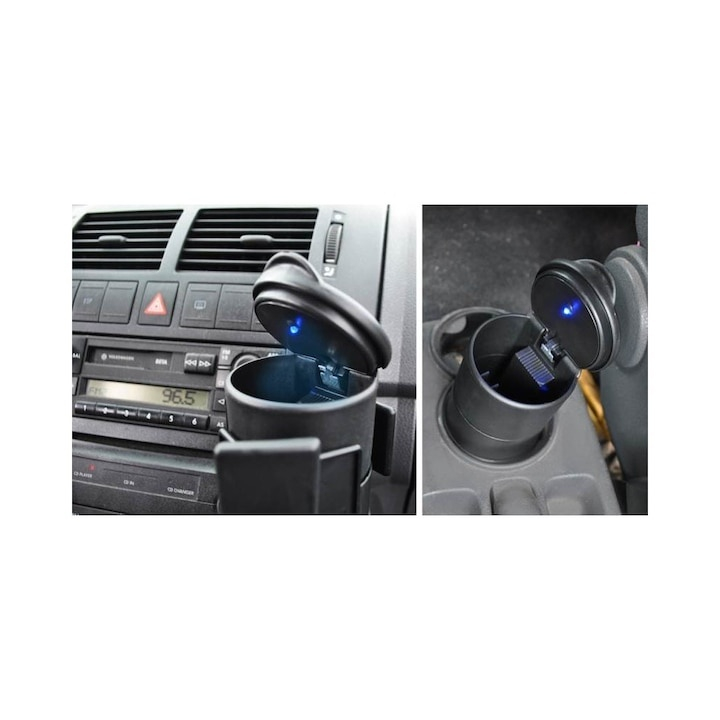 Aceasta scrumiera auto universala cu LED este accesoriul perfect pentru soferii care apreciaza confortul, curatenia si eleganta in interiorul masinii. Cu un design compact si modern, se potriveste perfect in suportul pentru pahare al oricarui autovehicul, oferind o solutie practica si igienica atat pentru fumatori, cat si pentru cei care doresc sa o foloseasca drept mini cos de gunoi pentru resturi mici.