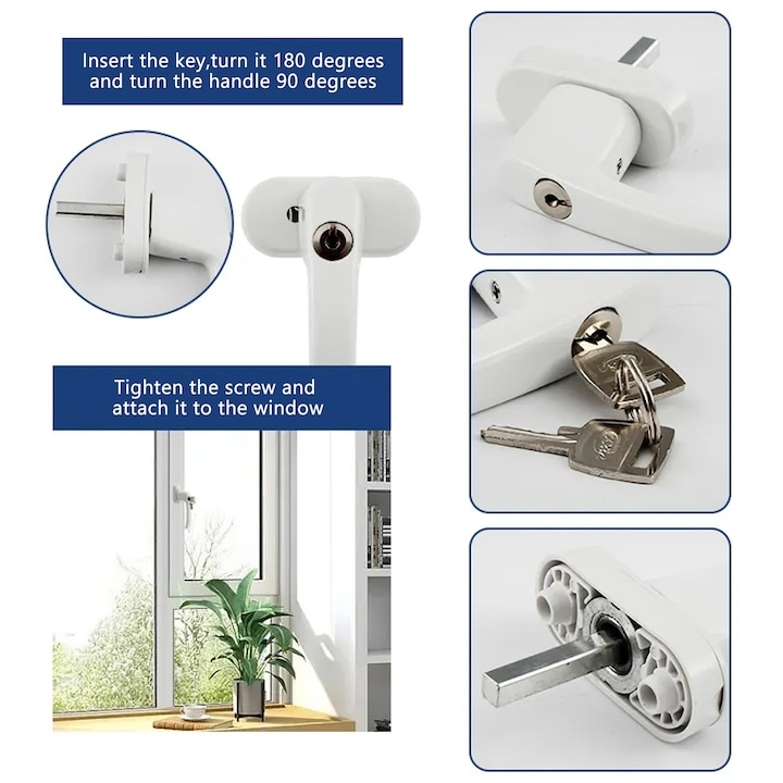 Manerul pentru fereastra cu incuietoare de siguranta este o solutie practica si eficienta pentru cresterea nivelului de securitate in locuinta. Sistemul de blocare cu cheie ajuta la prevenirea deschiderii accidentale sau neautorizate a ferestrelor si usilor de balcon, fiind ideal atat pentru protectia impotriva efractiei, cat si pentru siguranta copiilor.