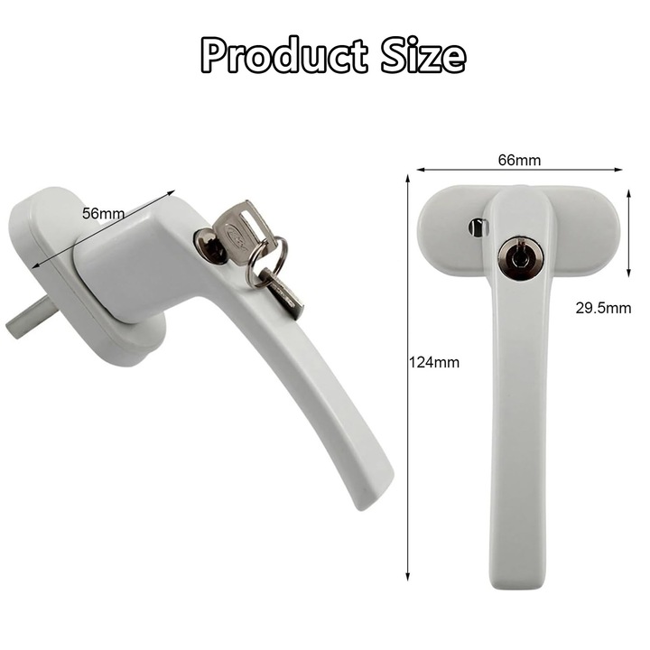 Acest maner pentru fereastra cu sistem de blocare integrat este proiectat pentru a creste nivelul de siguranta in locuinte si spatii comerciale, oferind protectie eficienta impotriva deschiderii accidentale sau neautorizate. Blocarea cu cheie limiteaza accesul din exterior si previne manipularea ferestrelor de catre copii, contribuind la un mediu mai sigur si controlat.