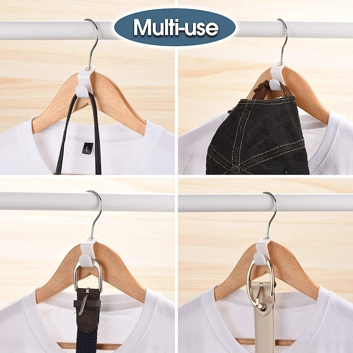 Organizează eficient garderoba ta cu acest set practic de 6 accesorii pentru umerașe, conceput pentru a maximiza spațiul din dulap. Realizate din plastic rezistent, aceste cârlige sunt ideale pentru a suspenda mai multe articole de îmbrăcăminte pe același umeraș – perfecte pentru cămăși, pantaloni, rochii, sacouri sau eșarfe.