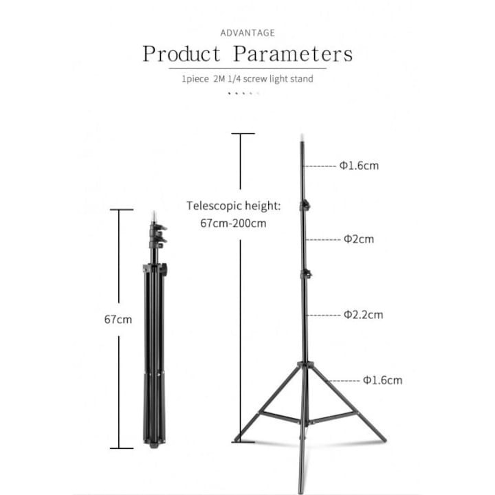 2x Trepied reglabil 80-200 cm cu filet universal 1/4