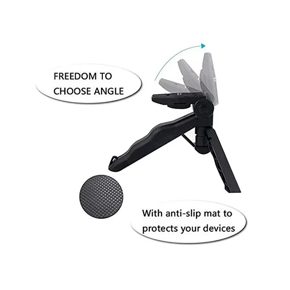 Suportul pentru telefon cu mini trepied 2 in 1 este un accesoriu compact si practic, conceput pentru sustinerea stabila a smartphone-ului in timpul filmarilor, apelurilor video sau utilizarii zilnice pe birou. Designul multifunctional permite utilizarea produsului atat ca mini trepied stabil, cat si ca suport de telefon pentru birou, fiind potrivit pentru streaming, vlogging sau vizionarea continutului video.