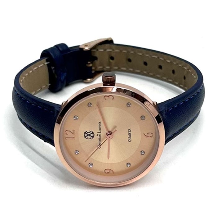 Ceas dama cu aspect haute couture, carcasa aur roz, pietre decorative, curea PU, baterie inlocuibila – Christian Lacroix