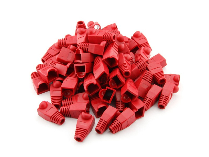 Set 50 bucati manson de protectie pentru mufe internet, RJ 45, rosu