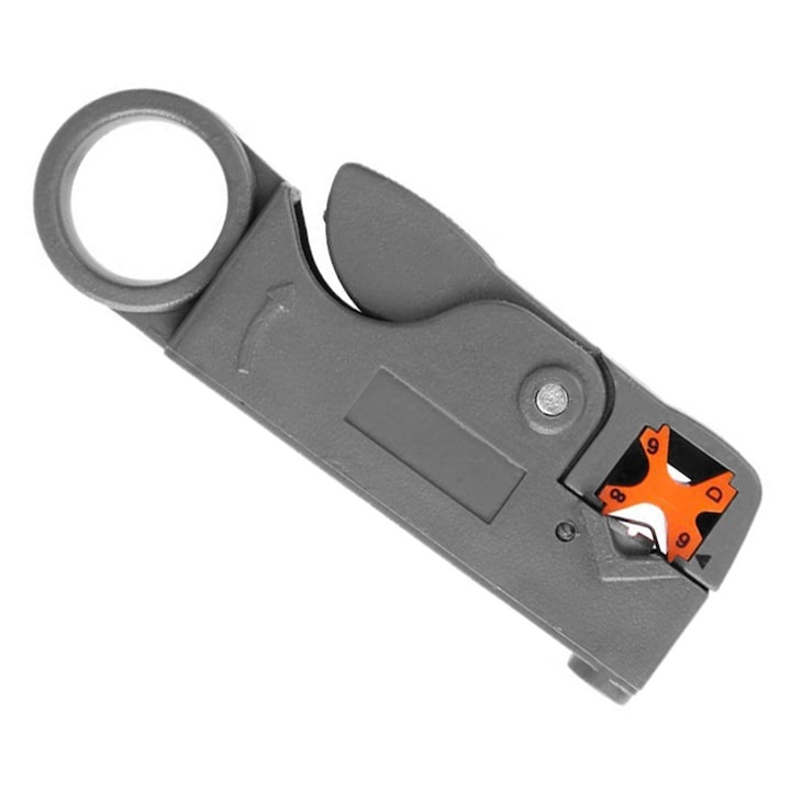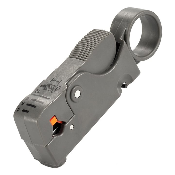 Stripper cablu coaxial, dezizolator reglabil pentru distante 4/6/8/12 mm, gri, 10x3x2 cm