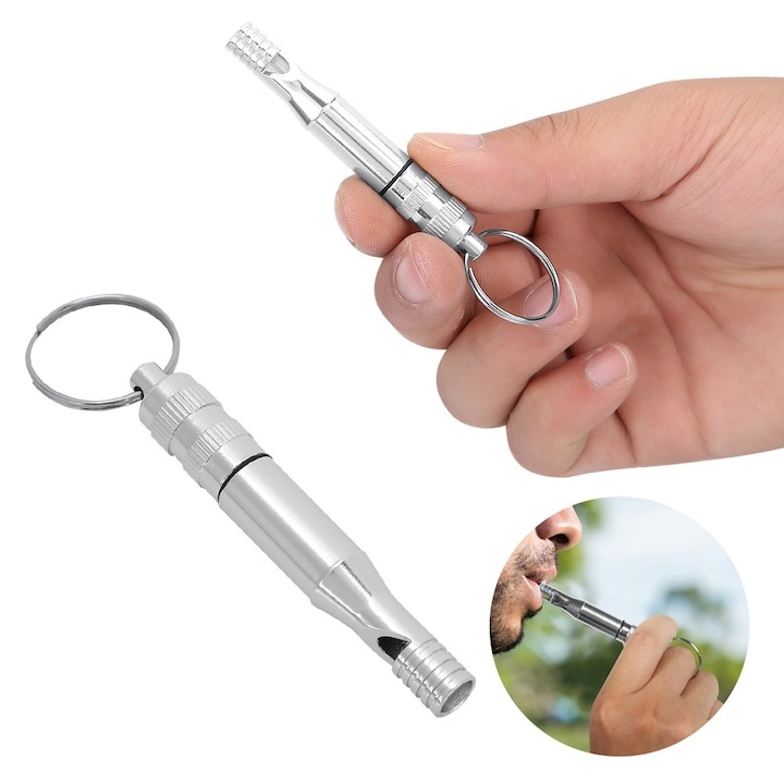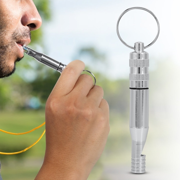 Fluierul de supravietuire din aluminiu este conceput pentru activitati outdoor precum camping, drumetii sau situatii de urgenta, oferind un semnal sonor puternic si clar datorita designului optimizat al fluxului de aer. Dimensiunea compacta si constructia robusta il transforma intr-un accesoriu util pentru echipamentele de aventura.