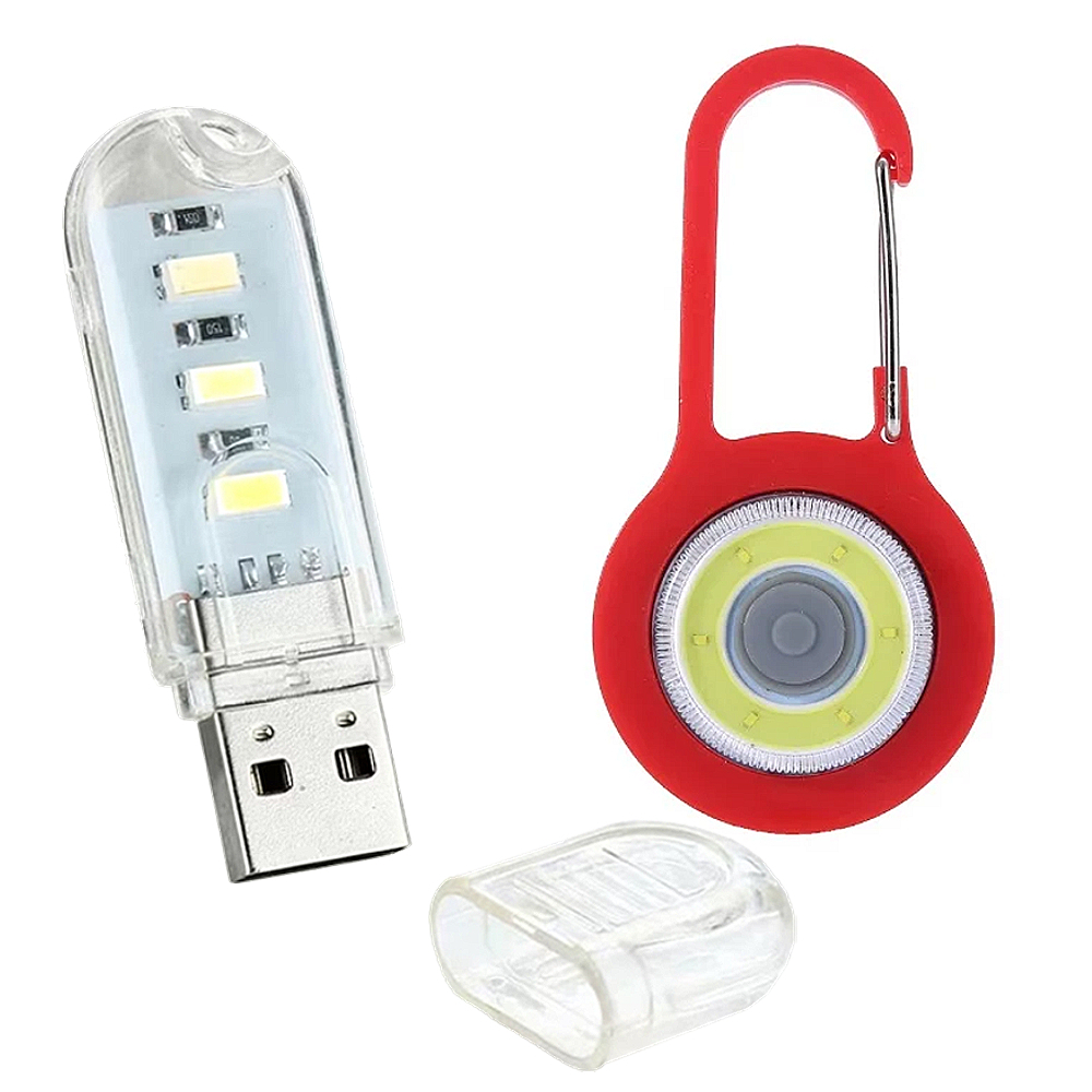 Set iluminare portabil, lampa USB 3W 5V transparenta + lanterna carabiniera LED rosie cu 3 moduri, lumina alba, pentru rucsac si utilizare zilnica